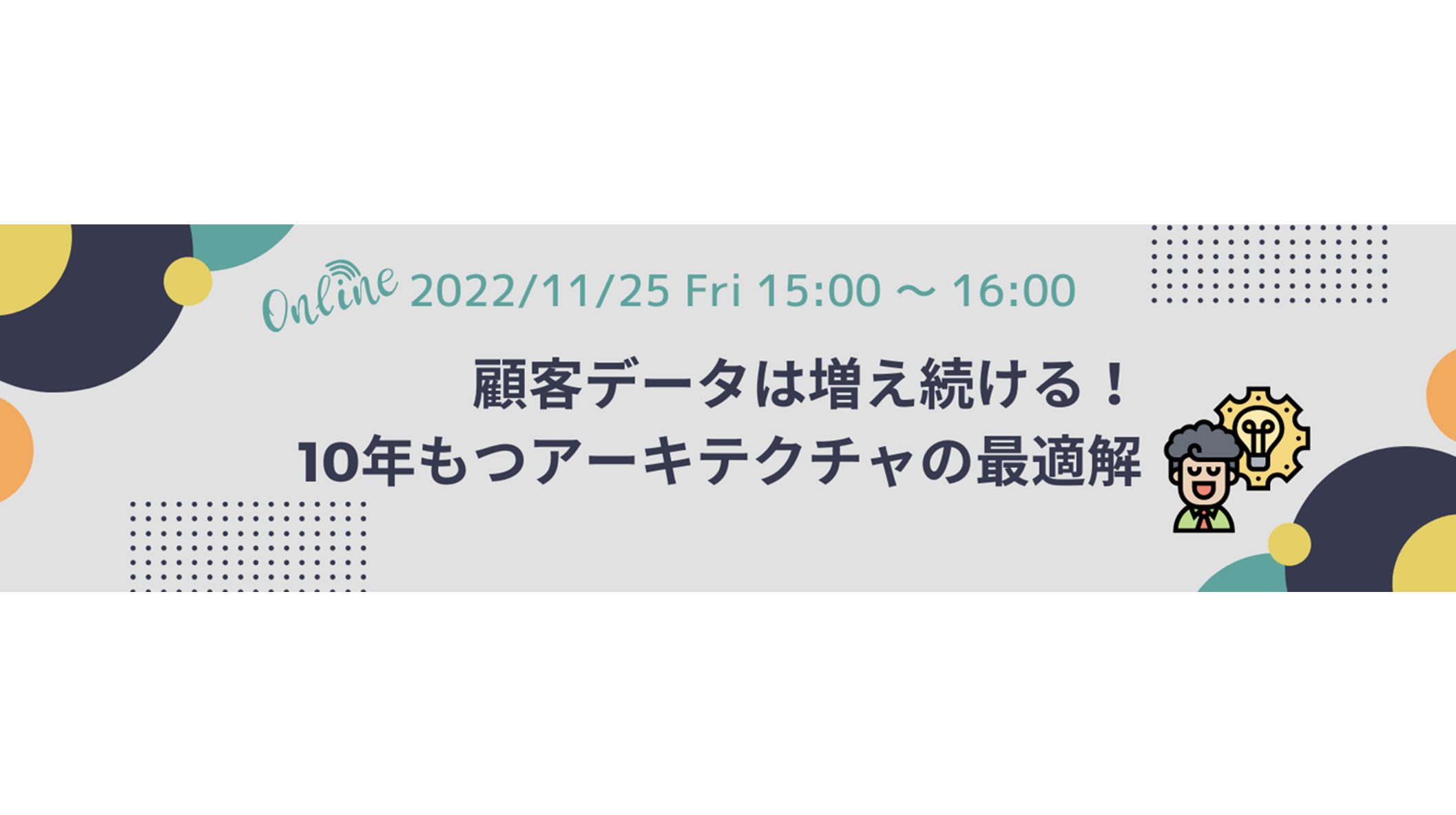 2022年11月16日 # 企業情報 【11/25開催|無料ウェビナー】 顧客データは増え続ける!10年もつアーキテクチャの最適解 〜顧客データ管理・活用のポイントやマーケティングDX戦略について解説〜